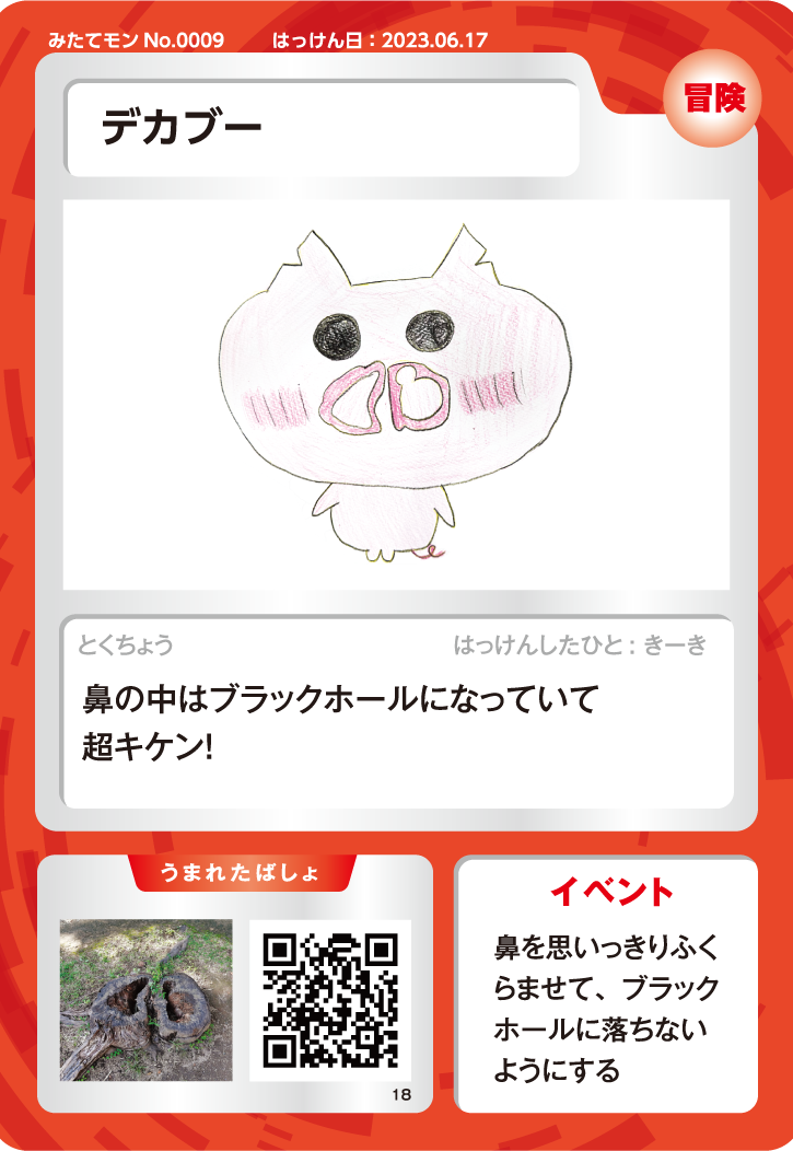 デカブー はっけんしたひときーき とくちょう鼻の中はブラックホールになっていて 超キケン! イベント鼻を思いっきりふくらませて、ブラックホールに落ちないようにする うまれたばしょ ARCHIVE 次の記事
